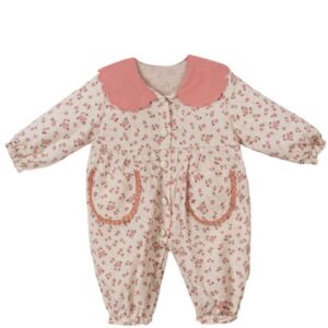BABY GIRL BROWN FLORAL JUMPSUIT WITH PEACH COLLAR
