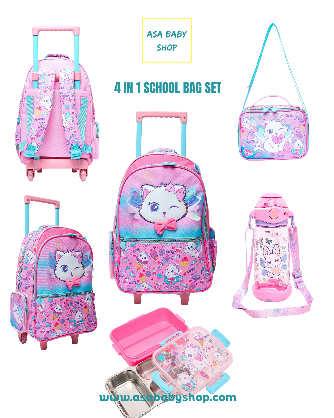 4 IN 1 SCHOOL BAG TROLLEY SET CAT