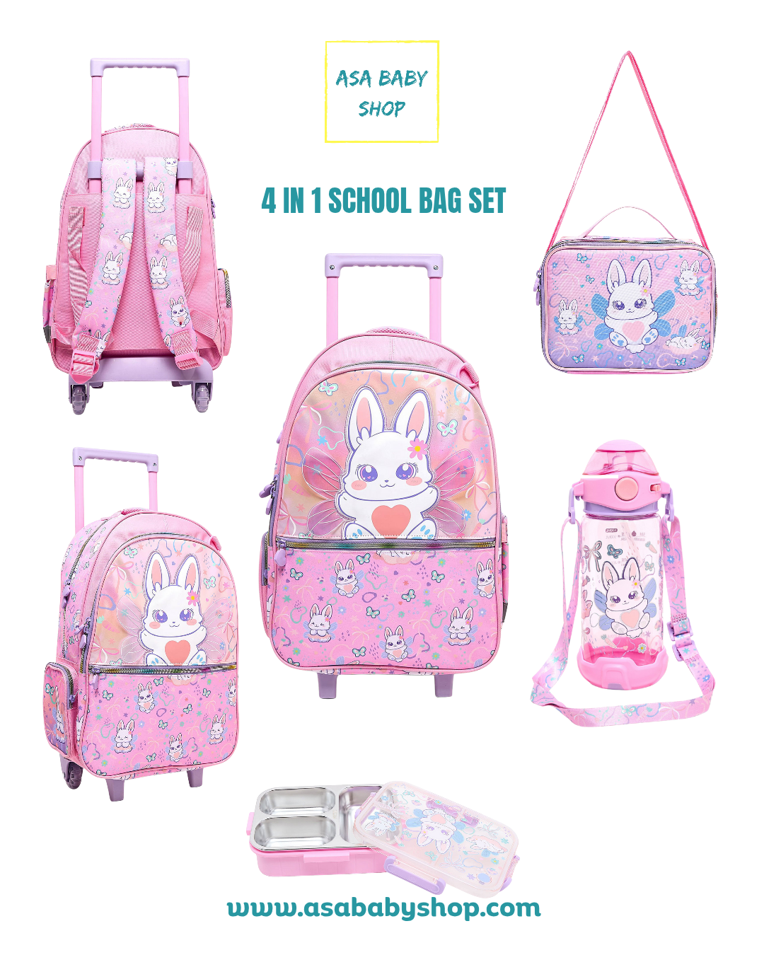 4 IN 1 SCHOOL BAG TROLLEY SET LIGHT PINK RABBIT