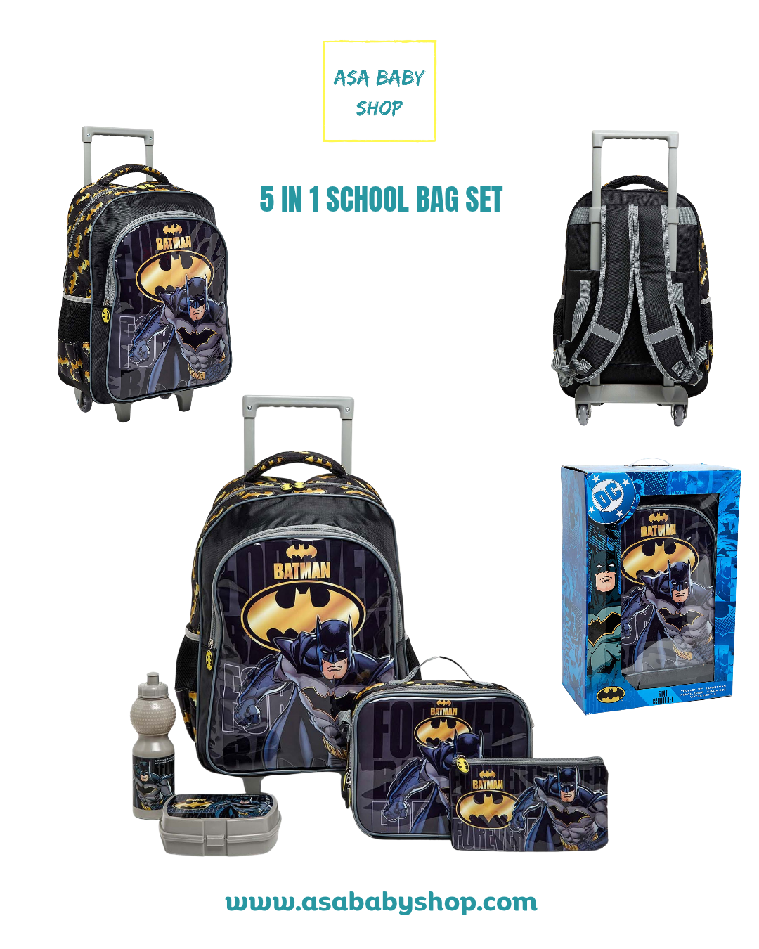 5 IN 1 SCHOOL MBAG TROLLEY SET BLACK BAT MAN
