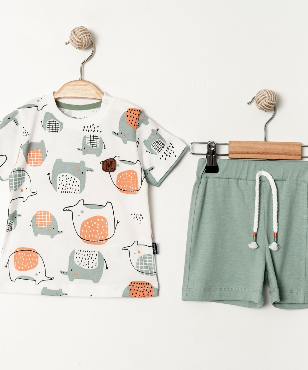 BABY BOY 2 PCS SET ORANGE AND WHITE ELEPHANT