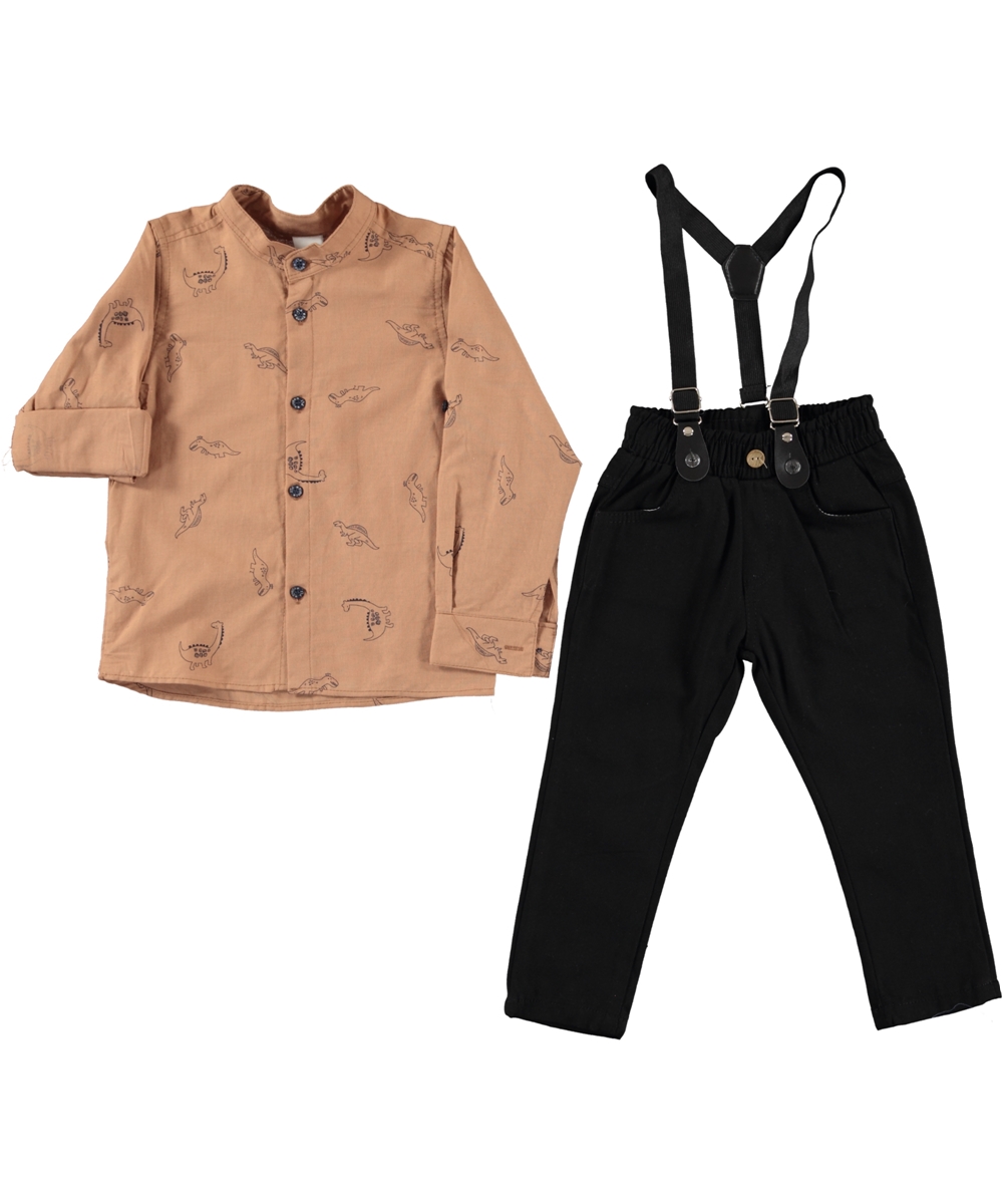 BABY BOY 2 PIECE SET BROWN & BLACK WITH SUSPENDERS
