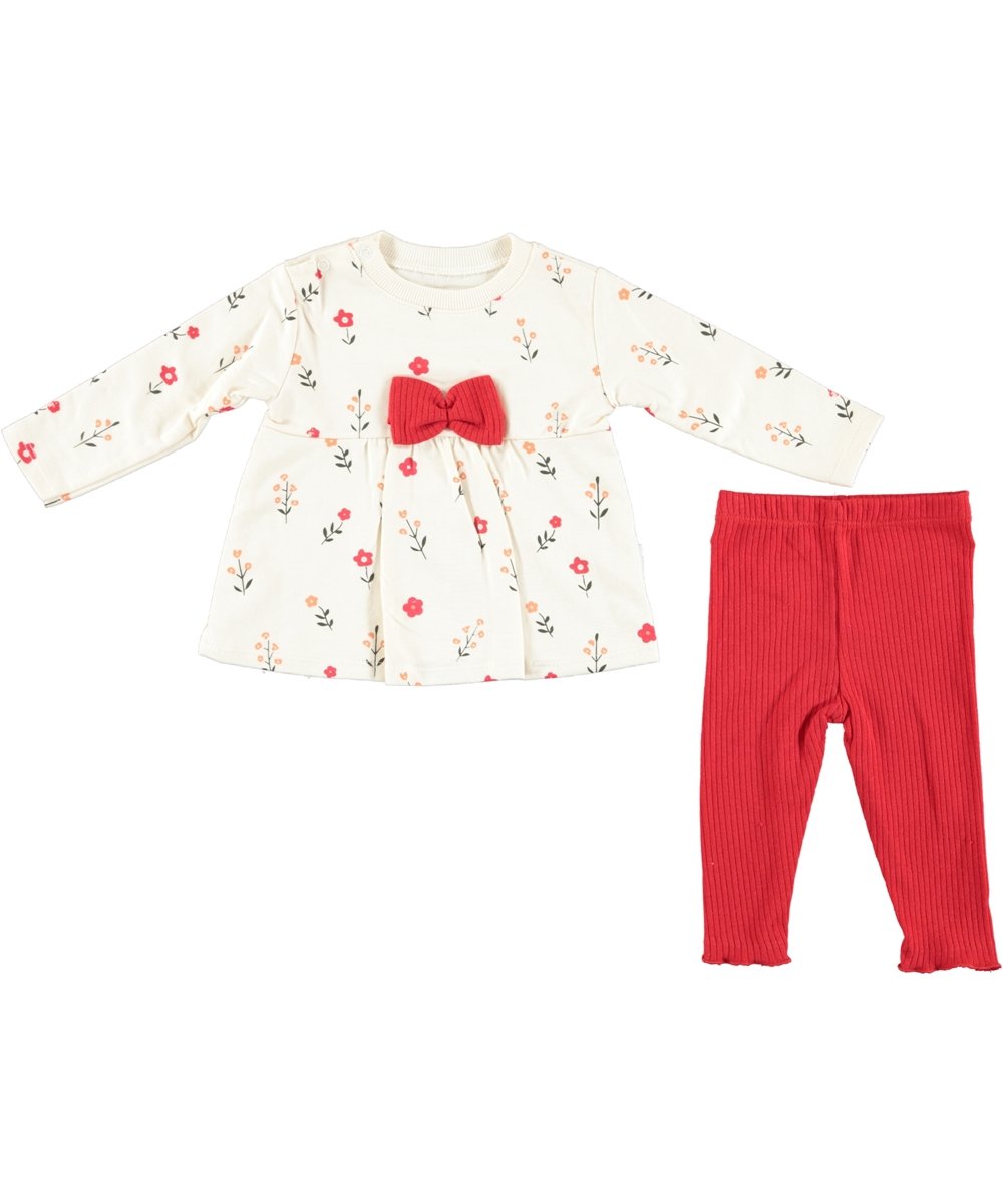 BABY GIRL 2 PCS SET CREAM & RED WITH FLOWER