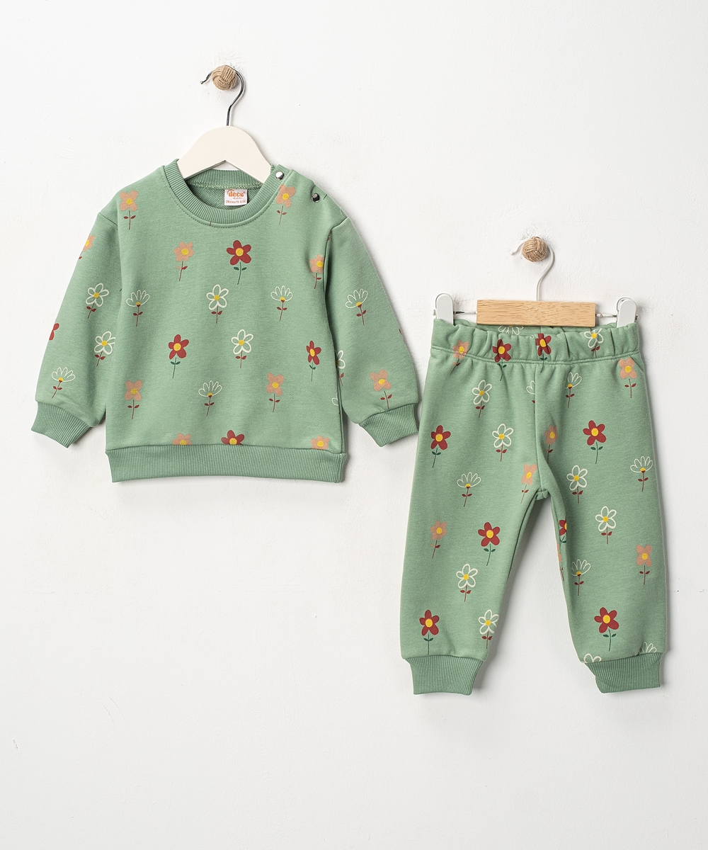 BABY GIRL 2 PCS SET GREEN FLOWER