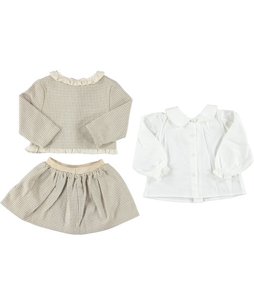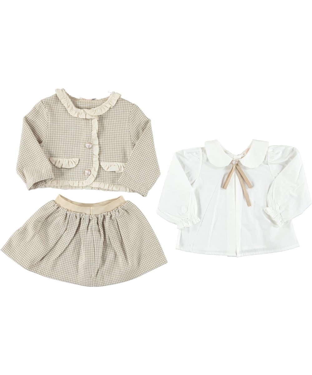 BABY GIRL 3 PCS SET BEIGE & BROWN SKIRT