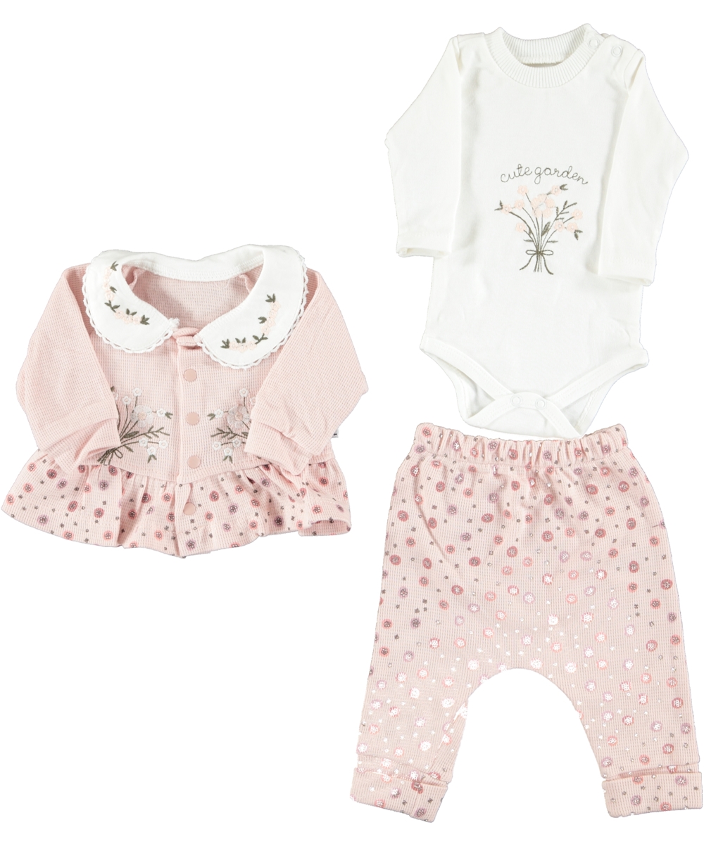 BABY GIRL 3 PCS SET CREAM AND PINK