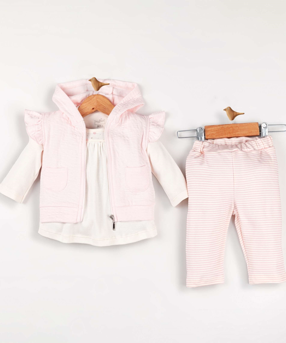 BABY GIRL 3 PCS SET LIGHT PINK WITH HOODIE