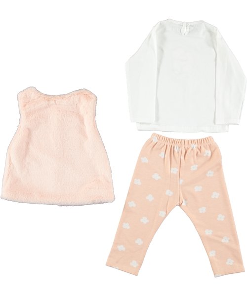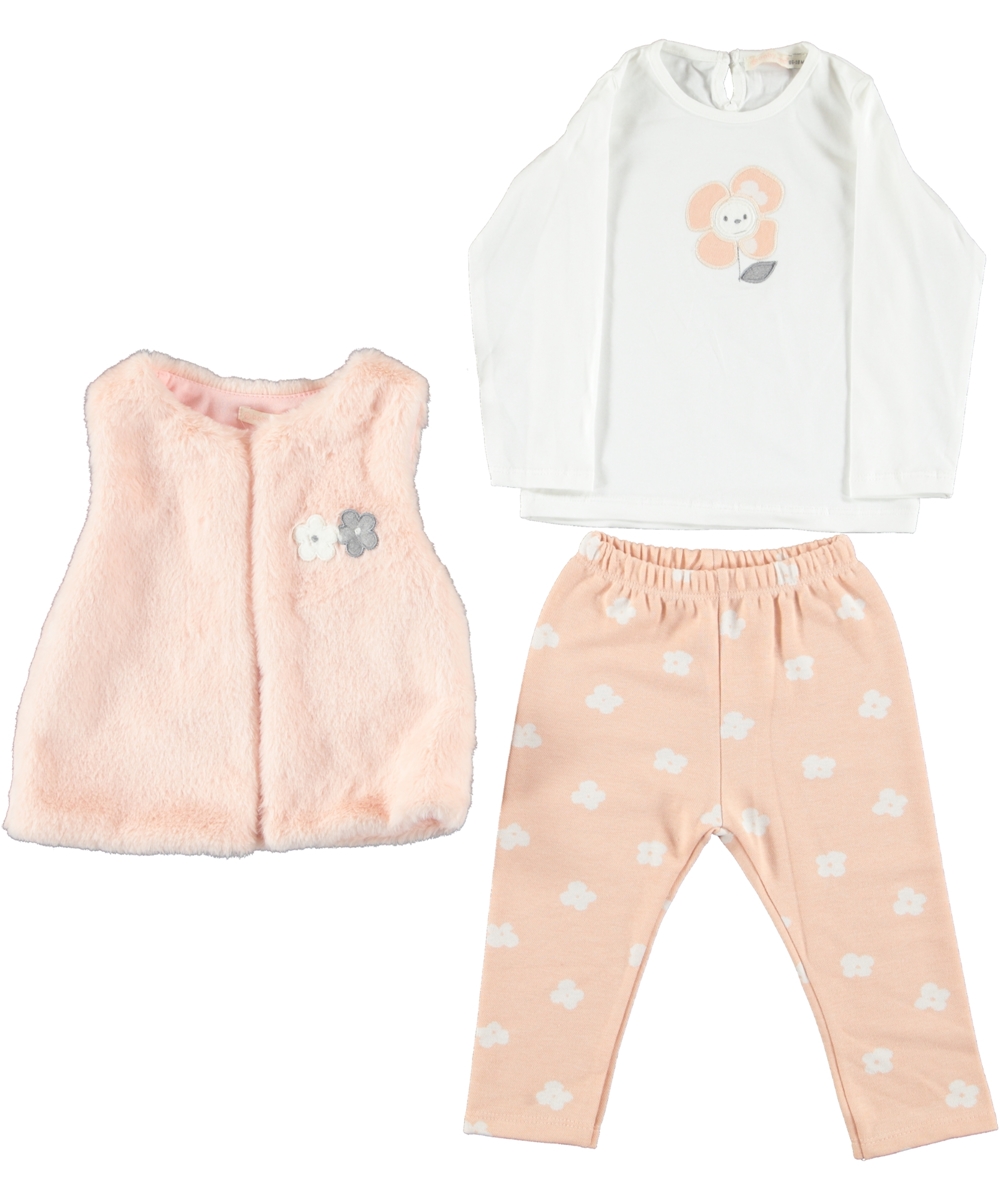 BABY GIRL 3 PCS SET PEACH FLOWER WITH FUR JACKET