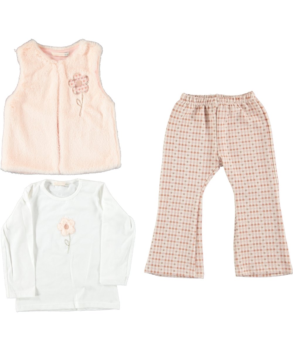 BABY GIRL 3 PCS SET PEACH WITH FUR JACKET(1-4Y)