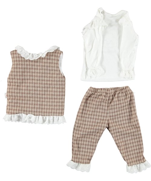 BABY GIRL 3 PCS SET WITH PUFFY JACKET BROWN