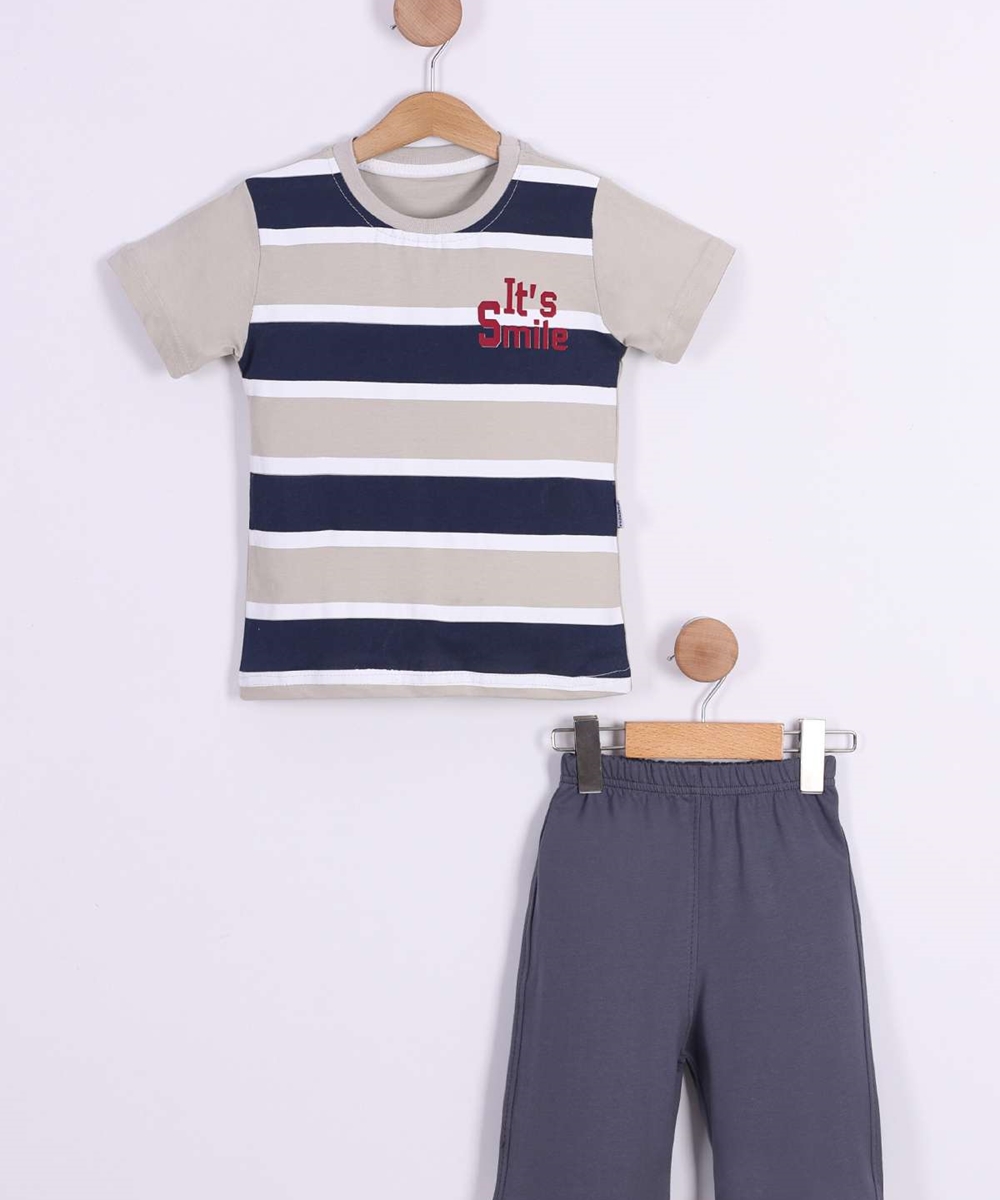 BOY 2 PIECE SET NAVY BLUE STRIPPES