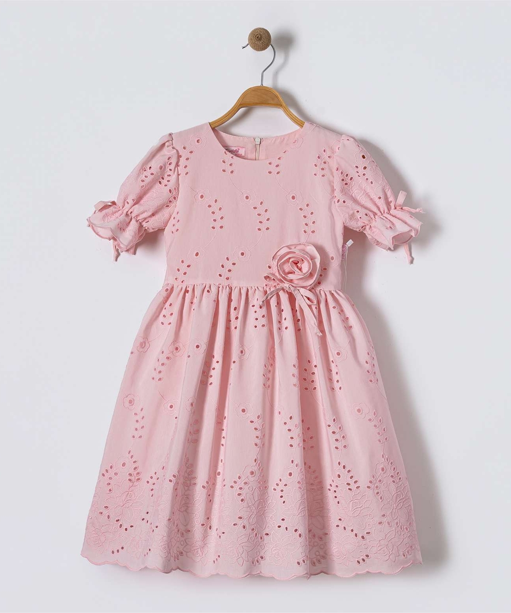 GIRL DRESS LACE PINK WITH ROSE